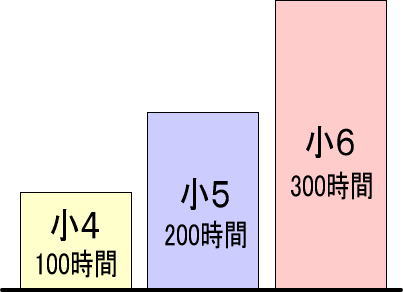 必要な勉強時間を、小4は100時間、小5は200時間、小6は300時間とします。